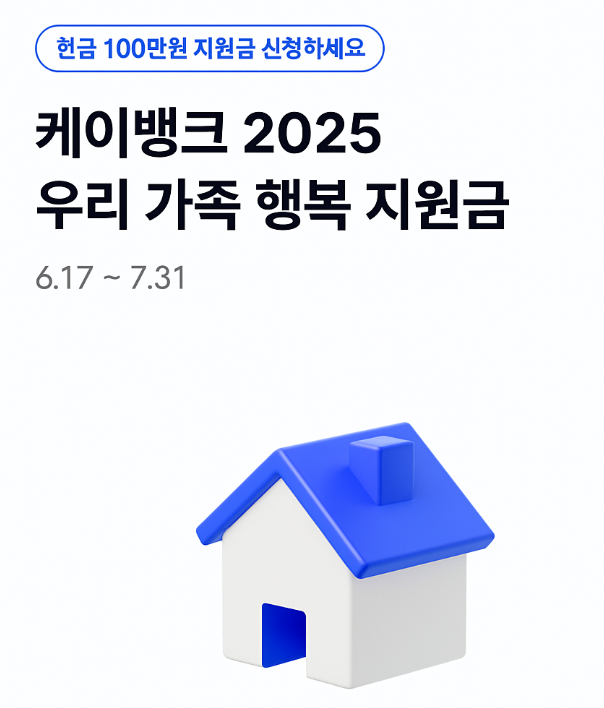 100만원이라는 지원금은 가족의 소소한 행복을 위한 의미 있는 지원이 될 것입니다. 지금 바로 케이뱅크 앱을 통해 신청해보세요.